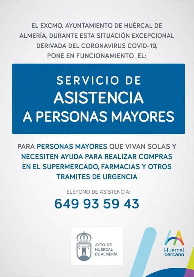 El Ayuntamiento de Huércal de Almería, ha puesto en marcha un Servicio de Asistencia, ante la crisis del covid-19, Exclusivamente, para personas Mayores, que se…