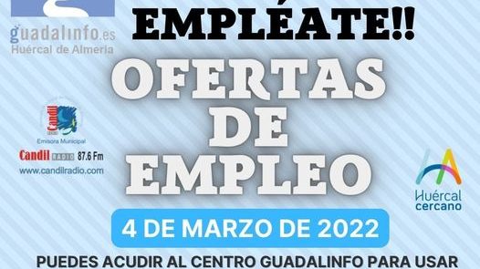 El Centro Guadalinfo retoma la actividad EMPLÉATE!! donde distribuiremos ofertas de empleo seleccionadas y actualizadas en Huércal de Almería y un radio cercano a nuestro…