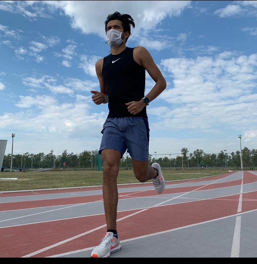 Nuestro compañero Wilfred, deportivo favorito con mascarilla y mochila con Almécija, en Candil avanzando el largo fin de semana completo, con el inicio de la liga para la A.D. Huércal en la primera andaluza.