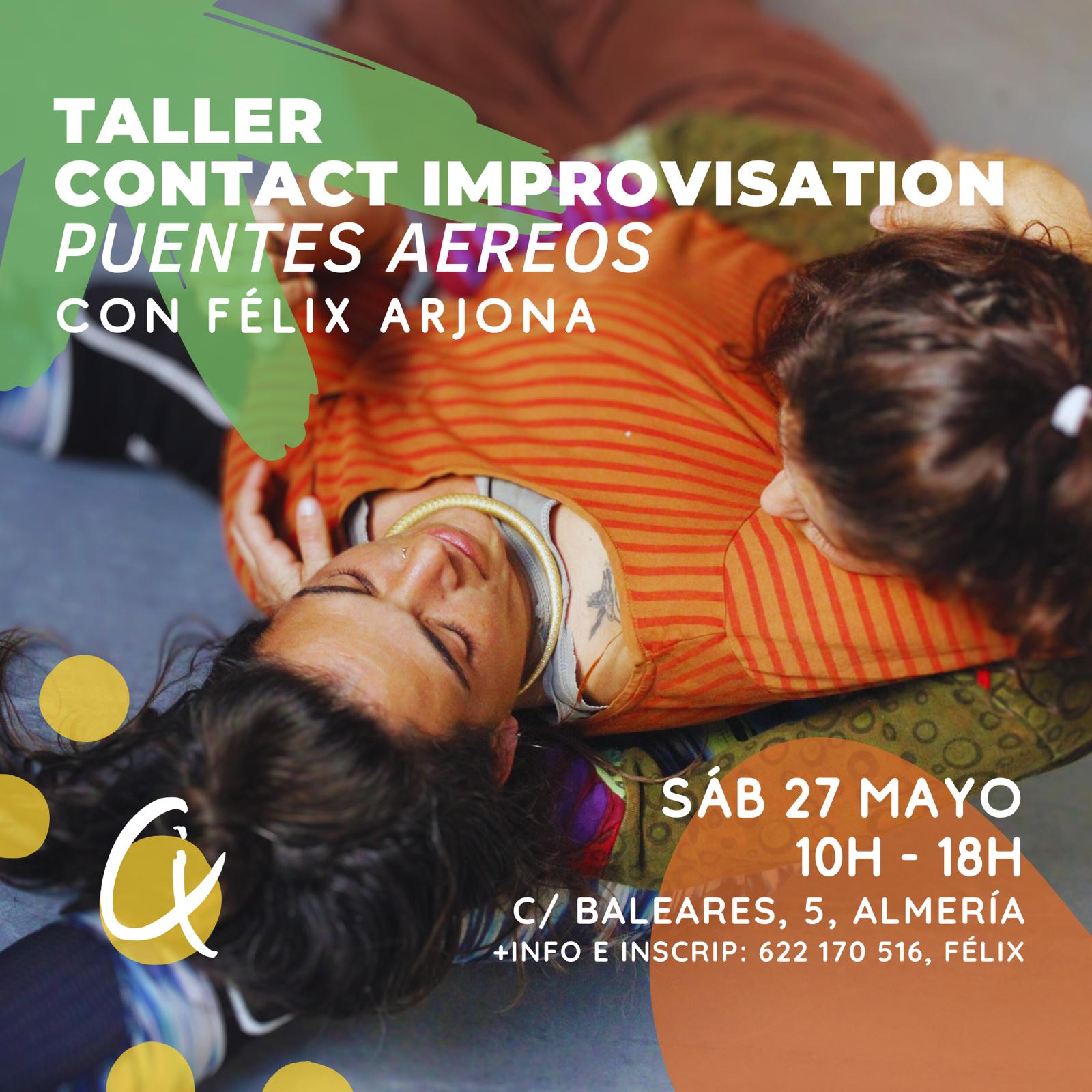 Y en el fin de semana continúan las actividades, en este caso en Almería capital. El sábado 27 de 10 a 18h se llevará cabo el taller de contact improvisation Puentes Aéreos, en el que se trabajarán una serie de ejercicios y dinámicas para construir una estructura segura que permite y facilita la base y los apoyos ‘puentes’ para llegar a situaciones corporales elevadas del suelo o ‘aéreos’. El precio de la actividad es de 35€ e incluye la participación en el taller y la jam que se realizará de 16:30 a 18h. Las personas socias de La Jacaranda contarán con un descuento, pagando 25€. Quienes solo tengan interés en participar en la jam pueden pagar 5€. La inscripción se realizará mediante bizum de 10€ y el resto se pagará en efectivo el día del taller. Para el pago y tener más información se puede contactar al número 622170516 (Félix). El aforo está limitado a 12 participantes.