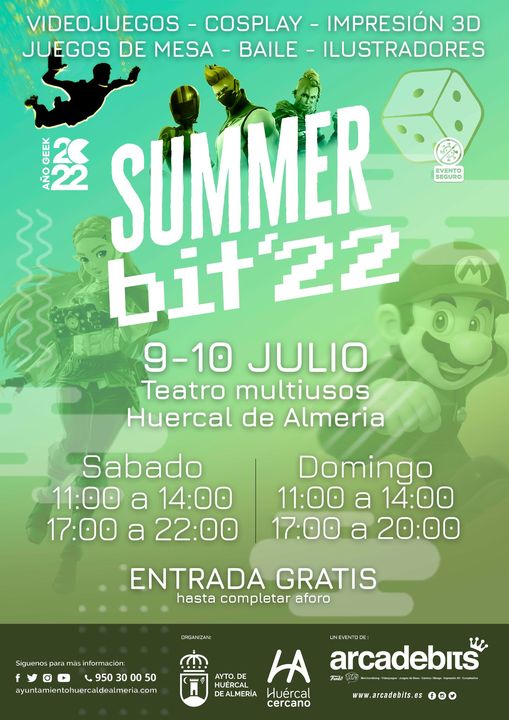 De lujo total, el evento más importante del Verano 22, en Huércal de Almería con el Área de Juventud + Arcade Bits Almería y su cúpula: Joaquín de la Casa + Esther «Jefaza» y Joaquín Jr. «el JEFAZO» + Almécija en Días de Radio.