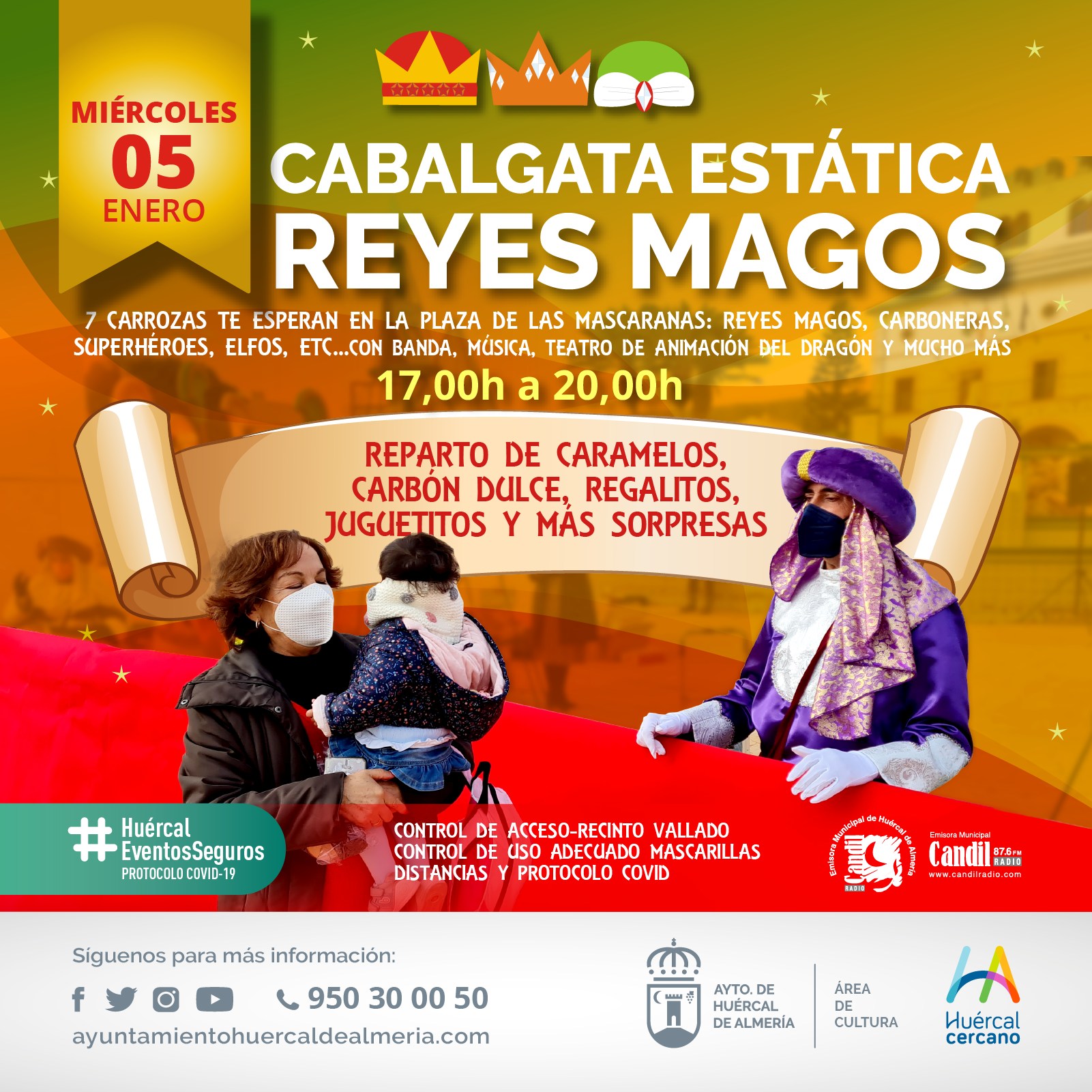 Sergio Bueno y Almécija, en Días de Radio desde Huércal ACTUAL, con la gran noticia Cercana del día, la llegada de los Reyes Magos a Huércal de Almería, con cabalgata estática y evento seguro, en la Plaza de las Mascaranas, desde las 17.00 horas.