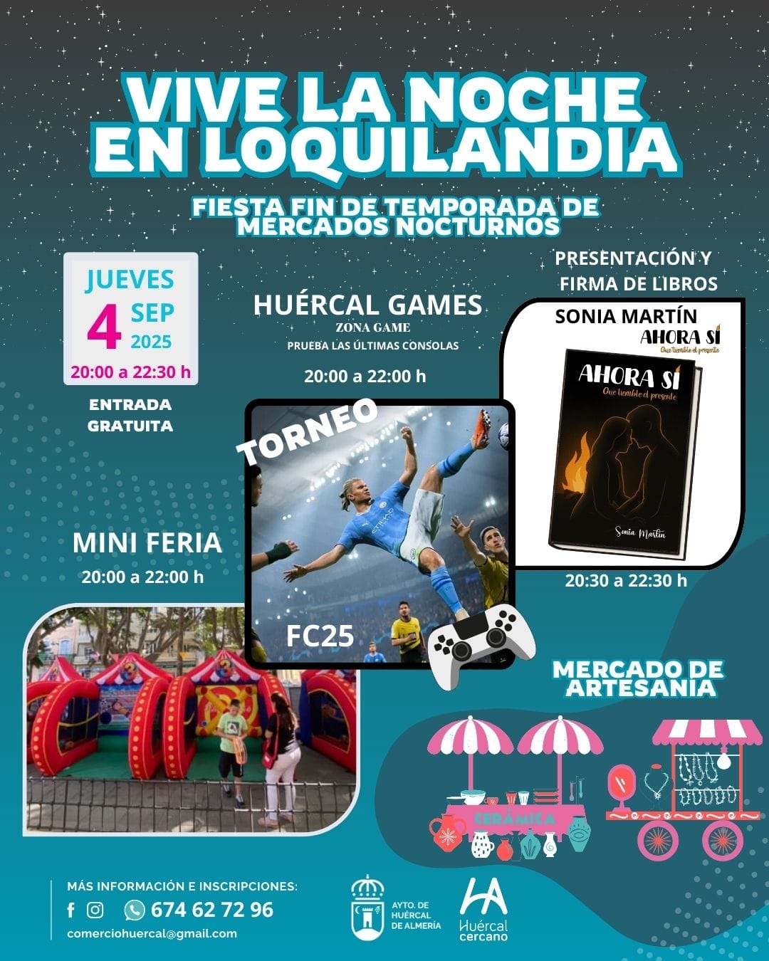 Este jueves 4 de septiembre, fiesta fin de temporada de los mercadillos nocturnos en el Parque Loquilandia, de 20:00 a 22:30 horas, en la que además contaremos con: Miniferia y