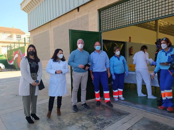 Abriendo el programa de este martes, desde el punto de Vacunación, Pabellón de Deportes Paco Navarro, con el Ayuntamiento de Huércal de Almería y una de las enfermeras del Equipo de Vacunación, Liliane López con Almécija, en Candil.