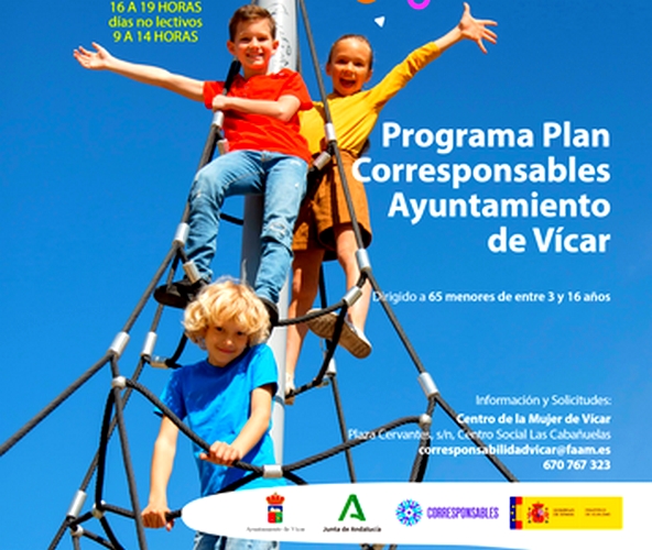 El Ayuntamiento de Vícar, a través de la Concejalía de Servicios Sociales, Igualdad, Mayores, Colectivos, Salud y Consumo, informa de la puesta en marcha del Plan Corresponsables de Vícar. Se trata de un programa de igualdad de género con el que se presta apoyo en materia de conciliación familiar y en el que se implica a las familias y los centros educativos del municipio.
