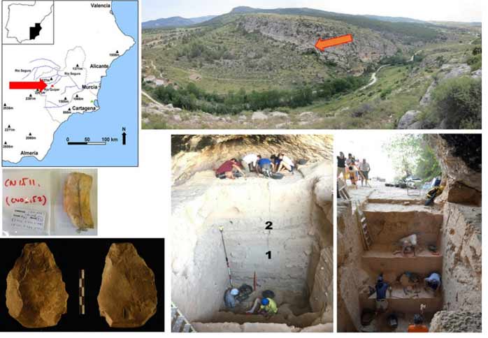 Un artículo publicado por la revista Journal of Paleolithic Archaeology, en publicación adelantada “on-line” al 9 de octubre del 2020 expone que la antigüedad del hacha de mano encontrada en la Cueva Negra del Estrecho del Río Quípar (Caravaca de la Cruz, Murcia) así como la evidencia de la combustión de la Cueva, podrían remontarse a entre 990.000 y 772.000 años, lo que convertiría a este tipo de instrumento y los restos de combustión en los más antiguos de Europa hallados hasta el momento. ¿La talló el Homo antecessor quizá?, se preguntan los autores. Se han encontrado en este lugar, asimismo diversos hallazgos paleolíticos y paleontológicos.