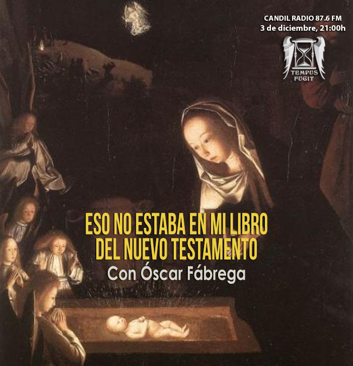 Esta semana tenemos el honor de recibir en Tempus Fugit a… Óscar Fábrega, director de este programa, junto con Raquel Berenguel, que viene a hablarnos, cómo no, de su último proyecto literario, “Eso no estaba en mi libro del Nuevo Testamento”.